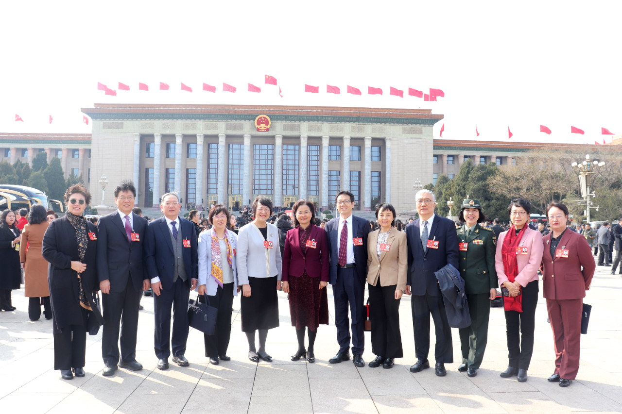 余艳红和部分中医药领域委员在人民大会堂前合影