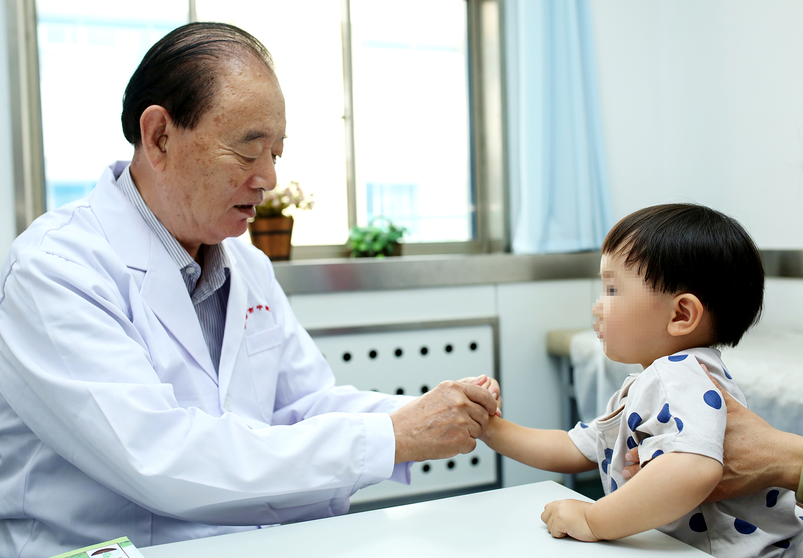 全国名中医、潍坊市中医院主任医师张奇文给患儿诊治。