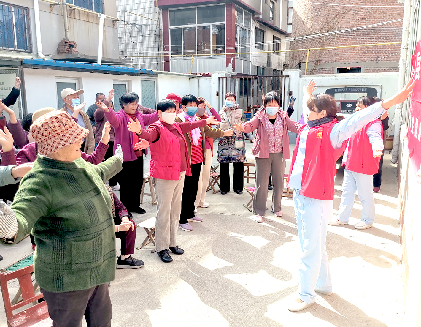 山东桓台荆家镇卫生院“向阳花”家庭医生团队带领居民习练养肝操