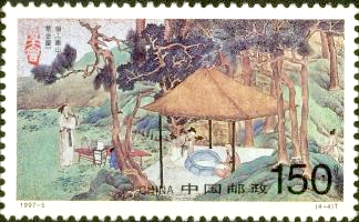 1997年4月8日,中国邮政发行1997-5《茶》特种邮票1套4枚,设计者为任宇。其中第4枚《茶会》,图案取自明代画家文征明的《惠山茶会图》局部。