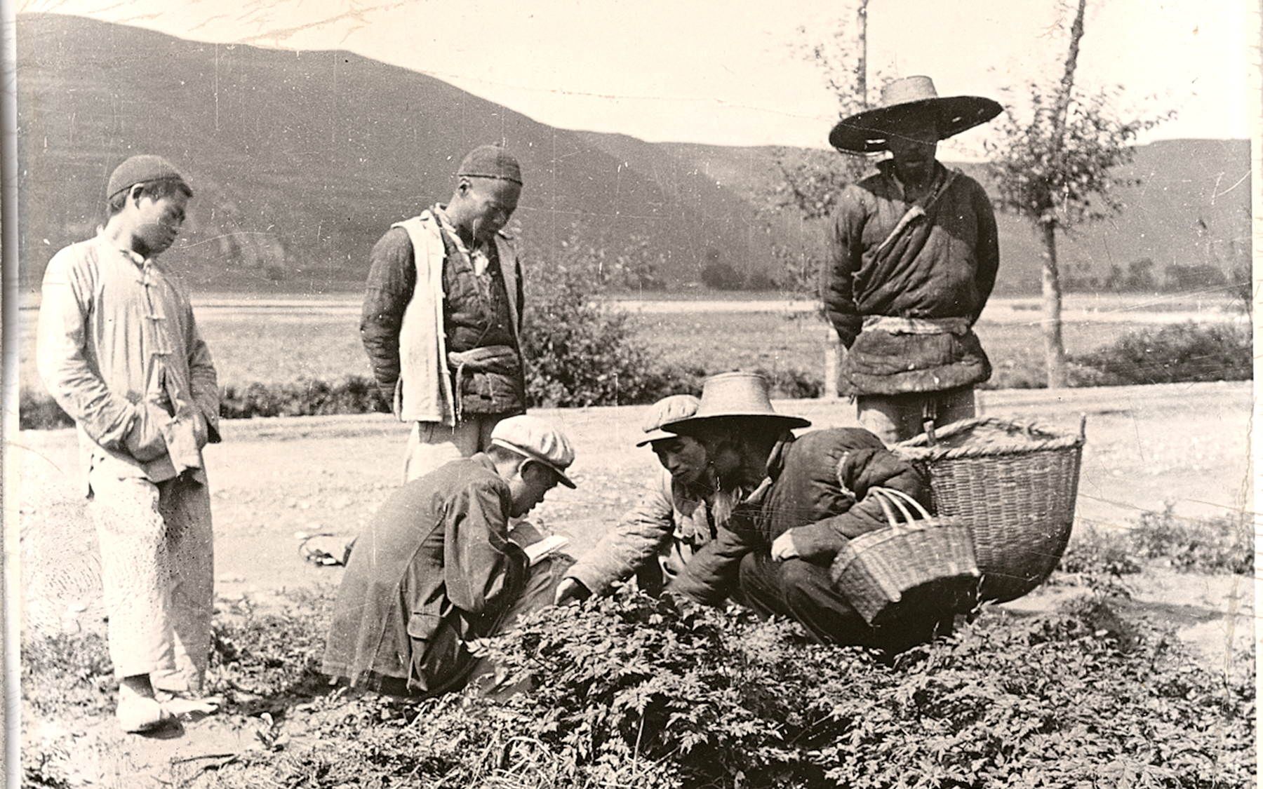 1953年王孝涛(左二)在甘肃考察当归。