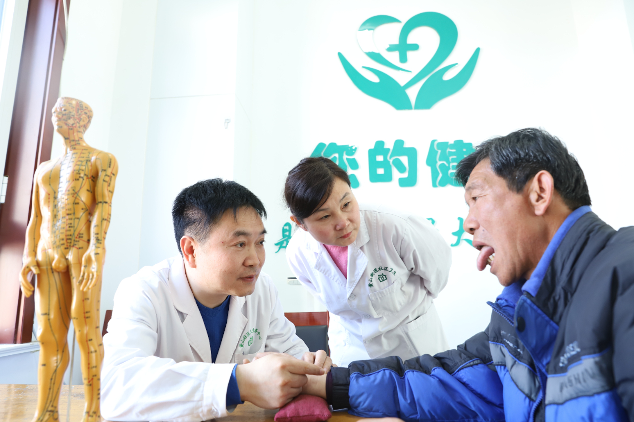 3月29日,山东省邹平市黄山街道见埠村卫生室,村医张娜(中)在社区卫生服务中心中医师郭海涛(左)的指导下,通过舌诊辨识患者体质。据了解,2024年以来,山东省邹平市开展卫生室派驻“辅导员”制度,引导近600名卫生院、社区卫生服务中心医务人员入驻300个村卫生室提供帮扶服务。郭海涛 贺文摄影报道