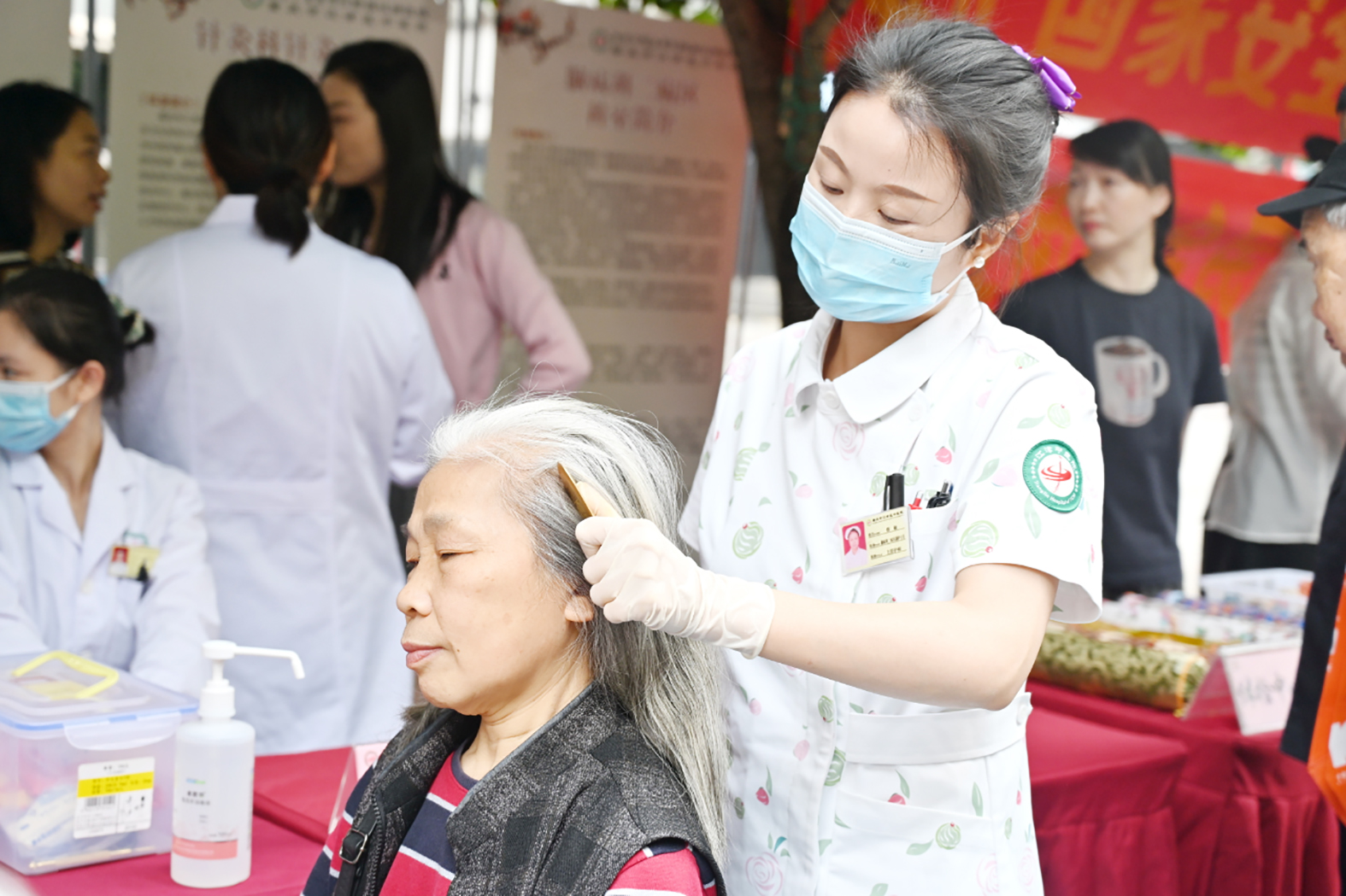 图为活动现场,该院护士为居民进行“铜砭刮痧”治疗。通讯员 严雪梅摄