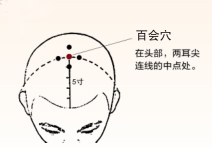百会,督脉腧穴,在头部,前发际正中直上5寸。简便取穴为折耳,两耳尖连线向上连线的中点。头为诸阳之会,百会是手三阳经、足三阳经、督脉和足厥阴经交会之处,百病皆治,故别称三阳五会,具有熄风醒脑、升阳固脱的功效。百会穴位居巅顶,功擅升举下陷之气,选取百会穴按揉,有下病上取之义,特别适合气虚下陷型痔疮人群,亦可结合体质采取艾灸百会,增强升阳举陷的功效。
