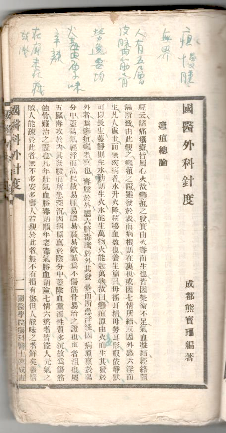 战争中最紧缺的是伤科医生。为此,成立于1936年的四川省国医学院在抗战期间开办伤科医士速成班,教材包括《药物学》《简明伤科国药辑要》《国医外科针度》《国医创伤精要》等。