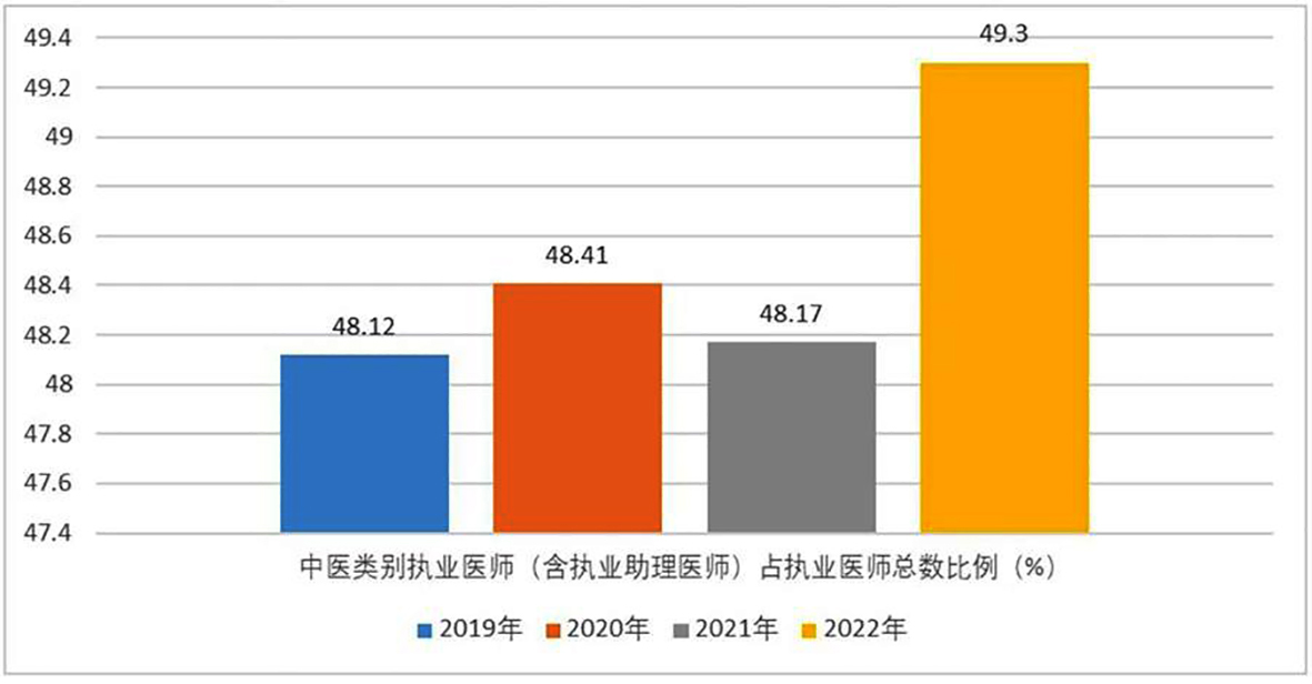 图10 2019-2022年二级公立中医医院中医类别执业医师(含执业助理医师)占比