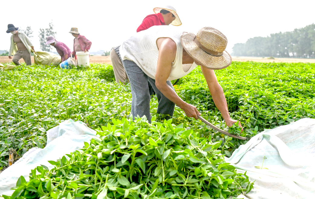 安徽省亳州市谯城区古城镇后杨村村民采收薄荷