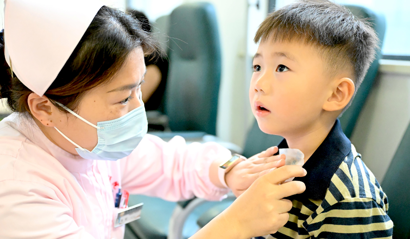 图为亳州市中医院儿科医护人员为小朋友贴“三伏贴”。刘勤利 刘远摄影报道