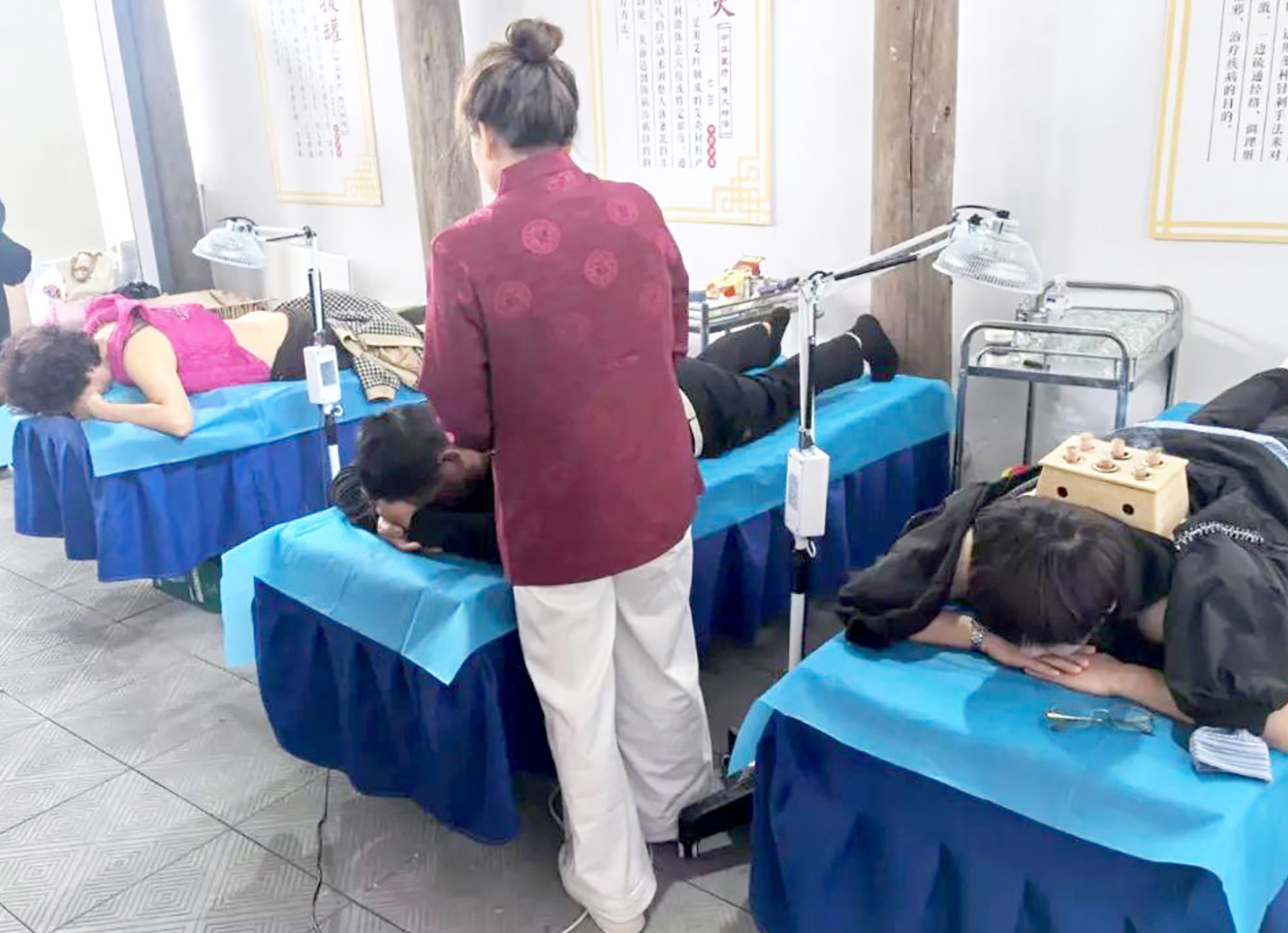 中医药文化惠民活动(甘肃站)现场市民体验中医适宜技术棍针拨筋疗法。