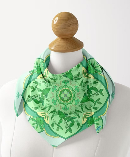 丝巾在茯苓、半夏、红枣、山药等药材形象基础上,结合卷草纹、枣花锦纹等传统纹样,充分运用现代设计理念,展现出中医药的博大精深与传统纹样的独特韵味。