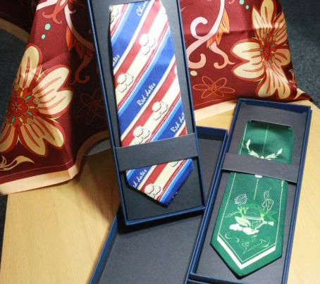 “枣淮皎月·绮罗映领”(左)与“二陈汤香·壶养纹生”(右)领带