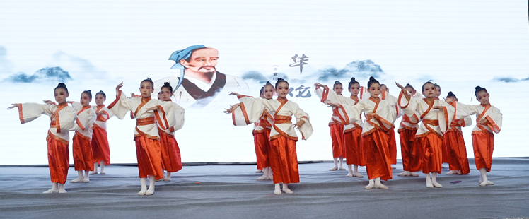 鞍山市台安县“百市千县”中医药文化惠民活动开幕式上小朋友表演舞蹈《中医谣》。