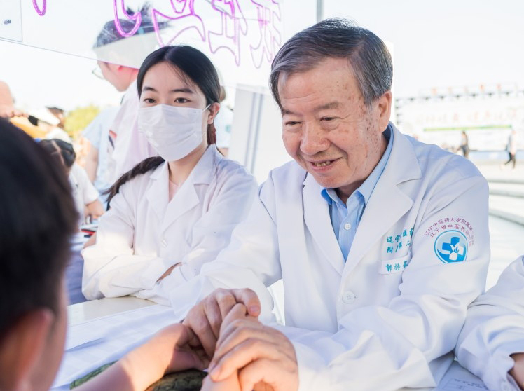辽宁中医药大学附属第二医院教授郭振武为小朋友诊脉。