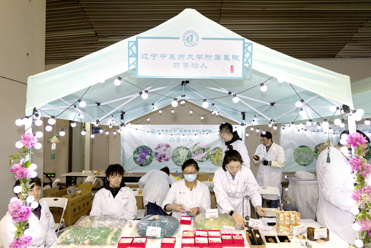 辽宁中医药大学附属医院在沈阳市活动现场展示文创产品。