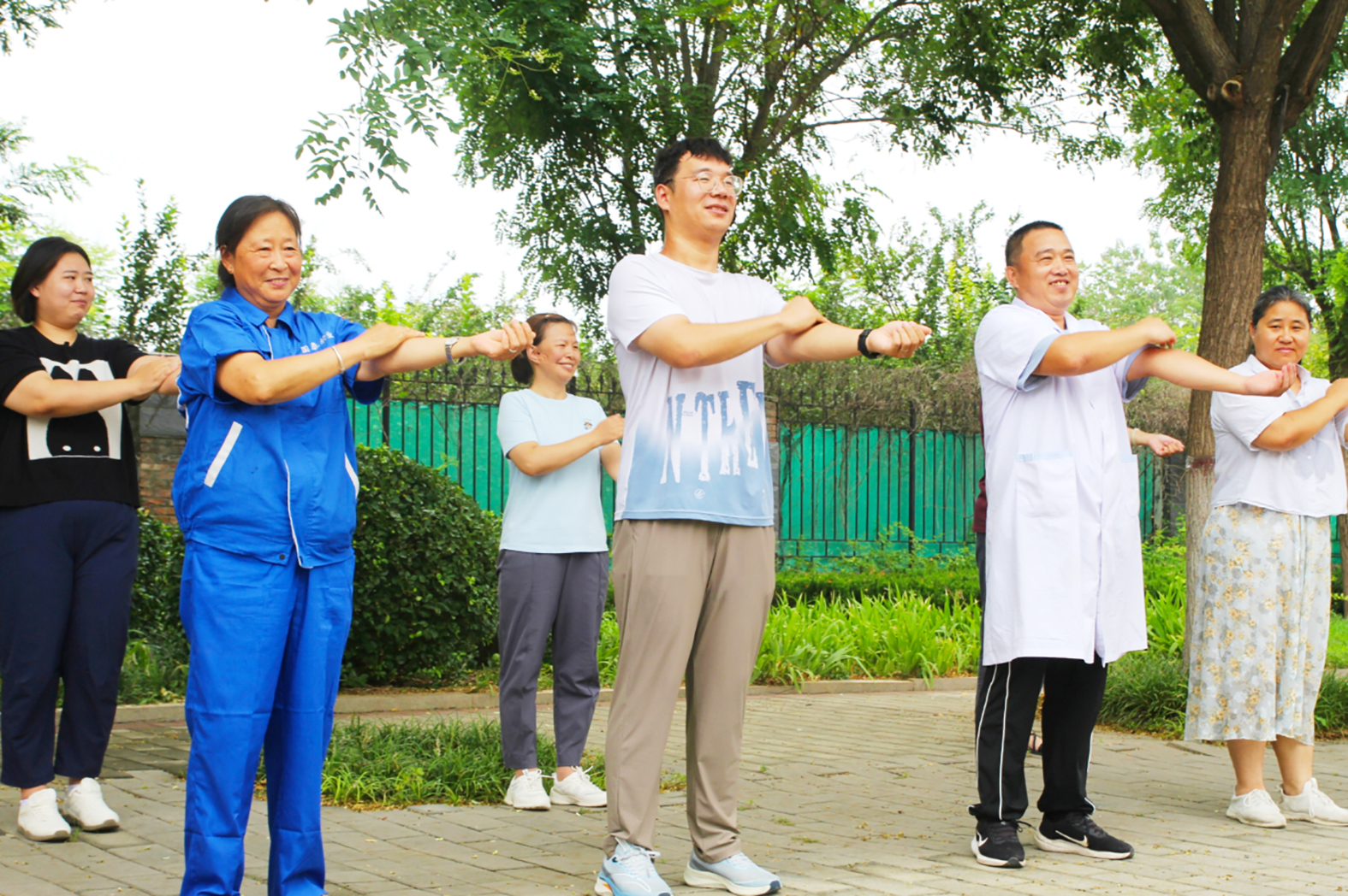 为推广中医药文化,山东省高青县田镇街道社区卫生服务中心组织开展中医减脂操推广活动,8月6日,医务人员在单位广场开展示范练习,引导职工、患者及家属积极参加。