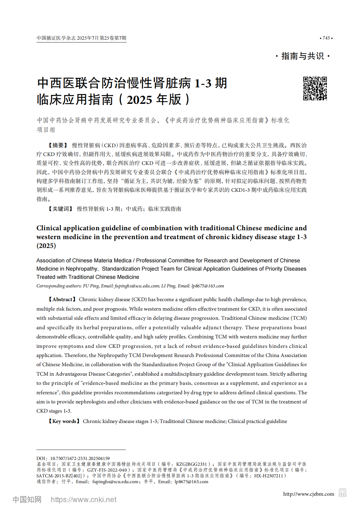 中西医联合防治慢性肾脏病1-3期临床应用指南(2025年版)发布