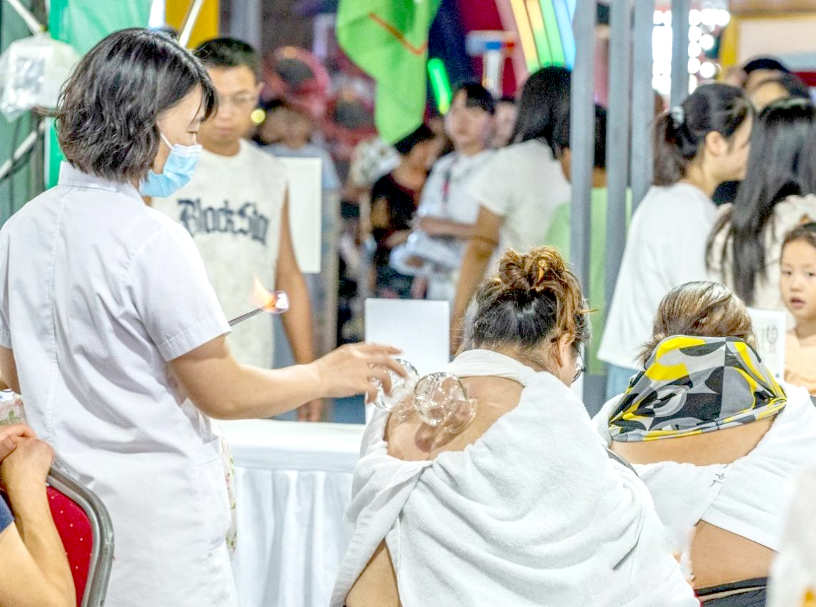 图为市民在体验中医拔罐。刘亚宁摄