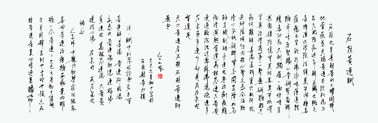 (注:赋中列举的经典名方有:黄连解毒汤、黄连阿胶汤、交泰丸、黄连温胆汤、连梅汤、香连丸、葛根芩连汤、大黄黄连泻心汤、左金丸、反左金丸。)