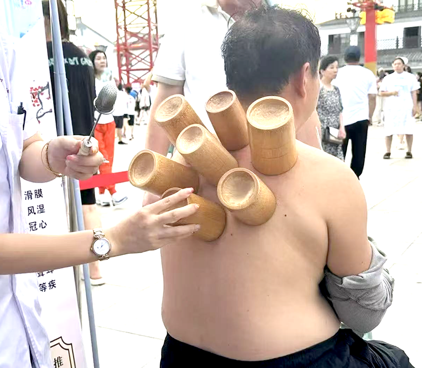 7月31日傍晚,吉林省长春市中医院东部院内飘起阵阵药香。拇指粗的竹筒在药锅里翻腾,护师麻利地夹起滚烫的竹罐,往张女士后颈穴位一扣。“伏天拔完罐,颈椎松快多了!”蒸腾的热气中,她舒展开眉头。这是吉林省“百市千县”中医药文化夜市二道区专场现场,20多个摊位支起长春市民中医生活场。