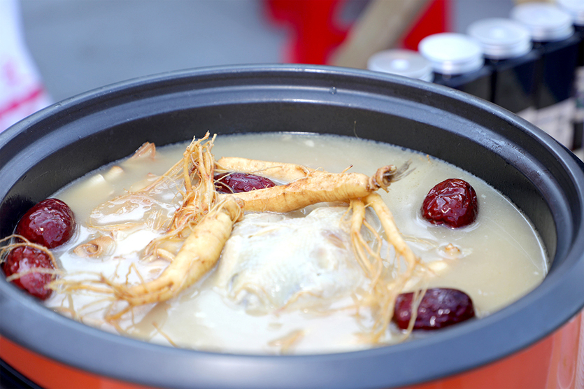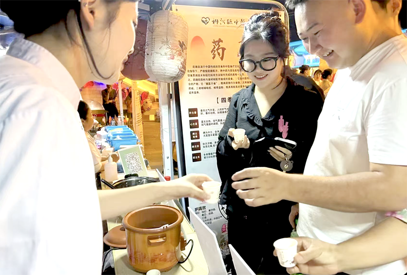 在柳河县的养生市集里,“健康”成了最抢手的“商品”。中药茶饮品鉴区,市民们品尝酸甜解腻的乌梅汤、清热降火桑菊凉茶、祛湿排毒的七味除湿茶,一口下去,暑气全消。在中医养生药膳区,五行养心汤、养肝汤、健脾粥、润肺汤、护肾浆、天麻人参鸡汤、药香茶蛋等按“四季五脏”原理定制的药膳,既具有较高的营养价值,又可防病治病、保健强身,让市民在味蕾享受中读懂养生智慧。