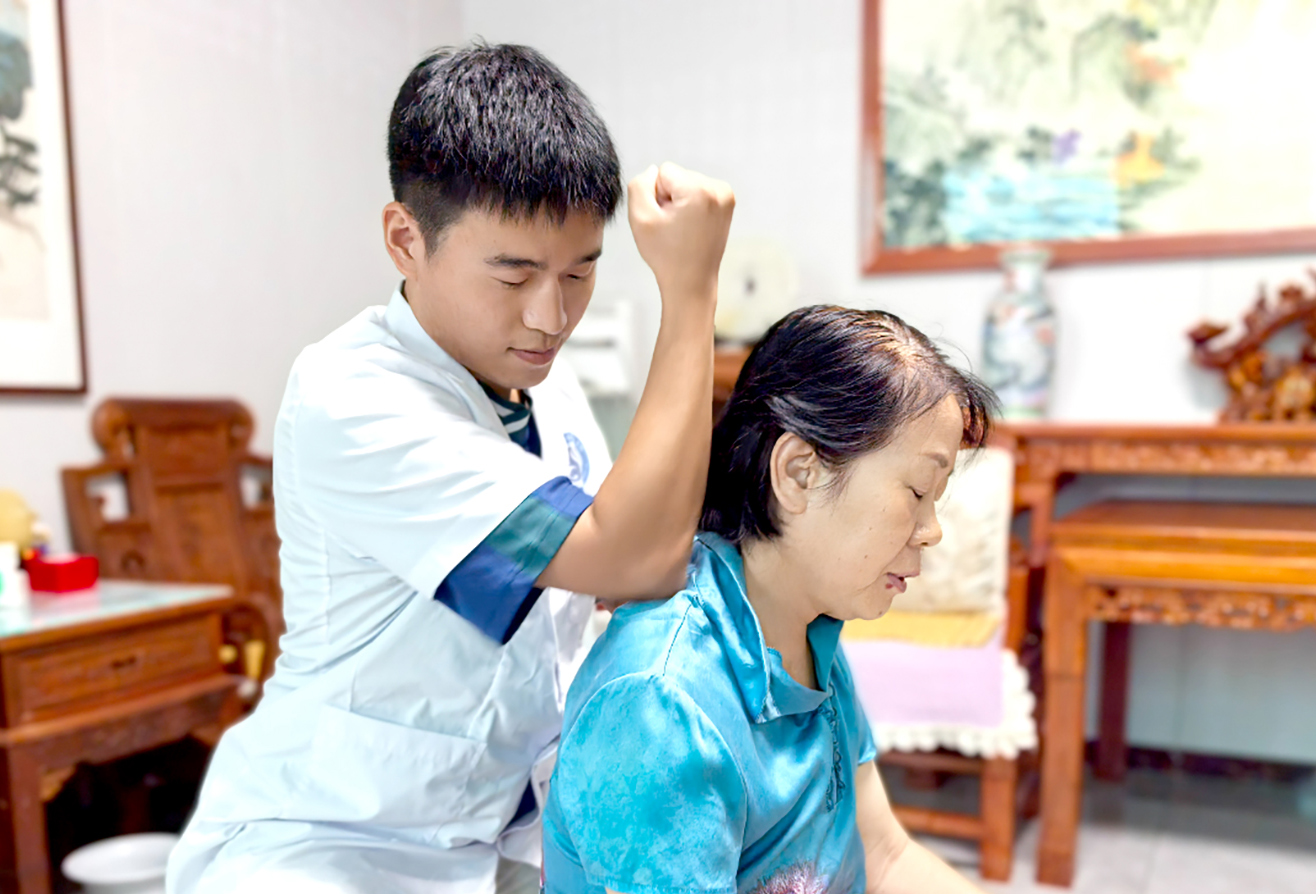图为家庭医生为退休教师做推拿治疗。通讯员于军 刘娜摄影报道