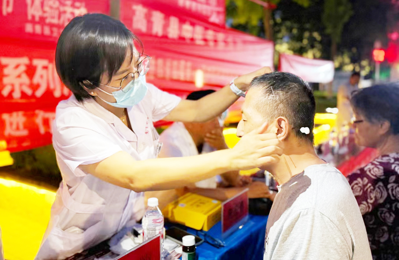 9月15日晚,山东省高青县举行中医药健康夜市活动。活动现场设置了中医义诊、技术体验、中医健康知识科普等区域,吸引大批市民前来体验,近距离感受中医药文化的魅力。