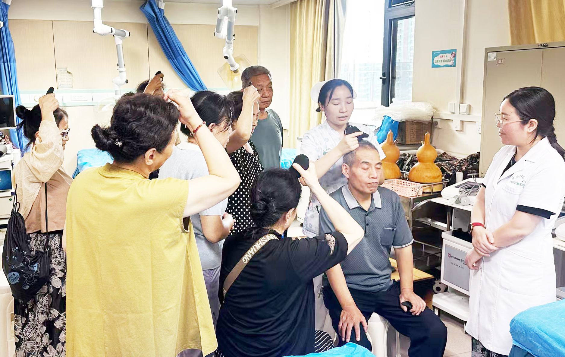 近日,陕西省西安中医脑病医院联合周边社区老年大学开展“中医文化沙龙”参观体验日活动。来自老年大学的20名学员走进医院,体验针灸、刮痧等疗法,跟随医护人员学习中医理论知识与日常保健方法。学员们还在中药师的带领下,学习辨识常用中药材,了解其功效与用法。