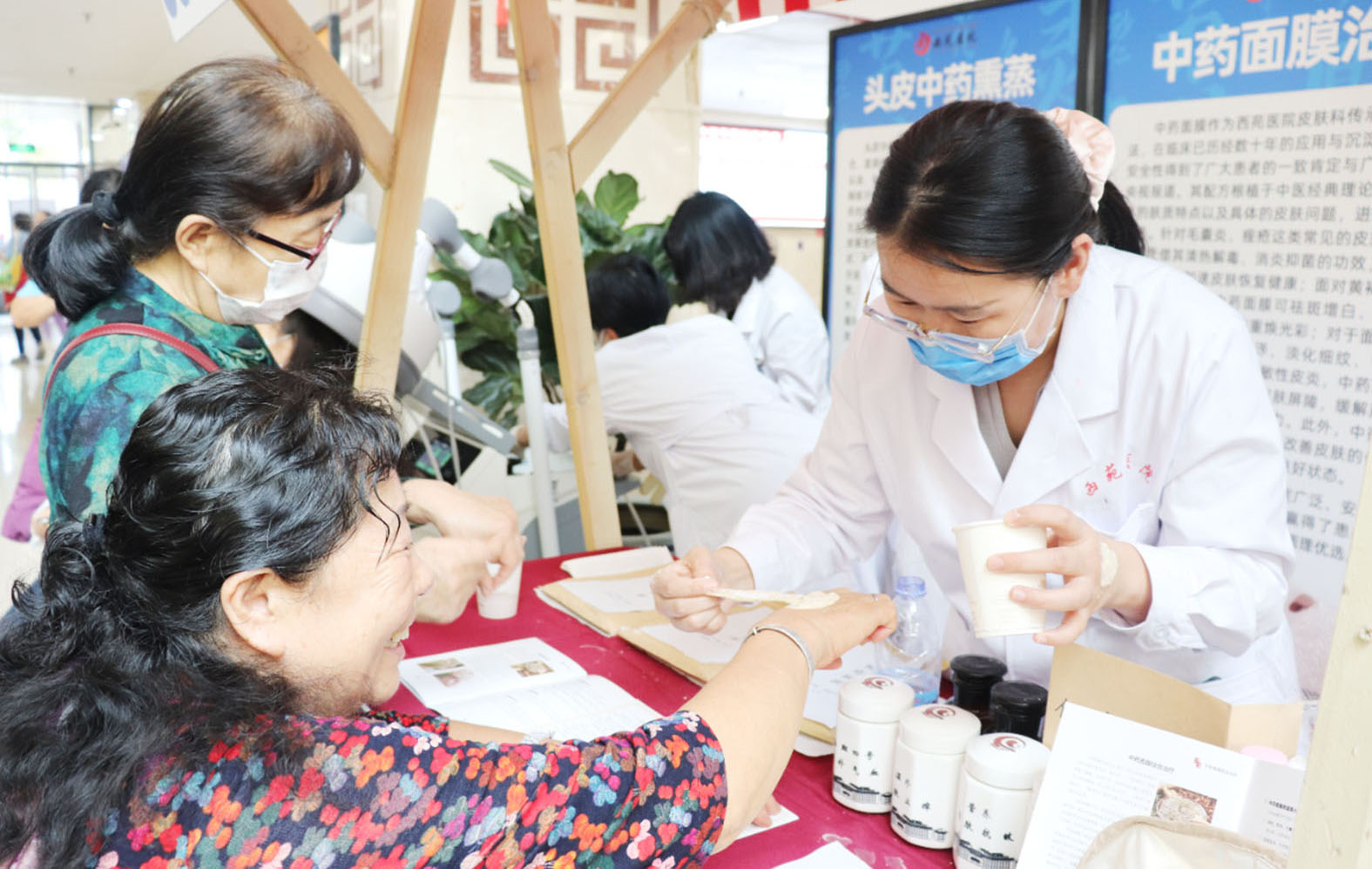 市民在现场体验中药抗敏软膜。