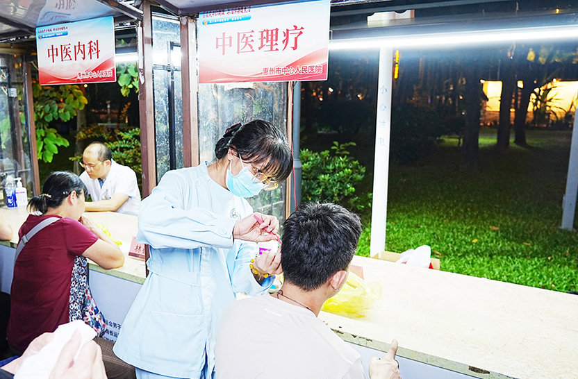惠州市活动现场,医务人员为民众提供中医药服务。