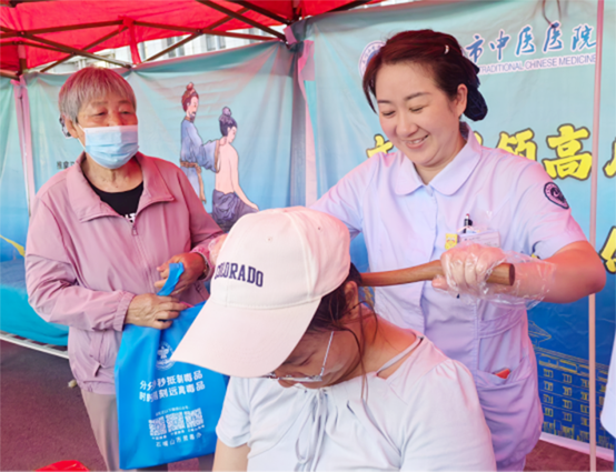 接着,医护人员为居民开展健康咨询服务,提供耳穴压豆、推拿、三伏贴等中医适宜技术服务。根据个人体质和健康状况提供个性化的中医膳食建议,并普及养生保健、日常调理等中医知识。