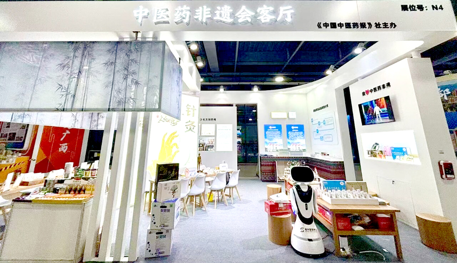 “中医药非遗会客厅”汇聚了藏医药浴法、中医针灸、二十四节气中医导引养生法、华佗五禽戏、易筋经十二势导引法等12项世界级、国家级与省市级中医药非遗项目。展台通过实物展示、互动体验、多媒体呈现等形式展现中医药非遗在健康服务、文化传承与国际传播中的独特价值,让观众直观感受中医药非遗的魅力。