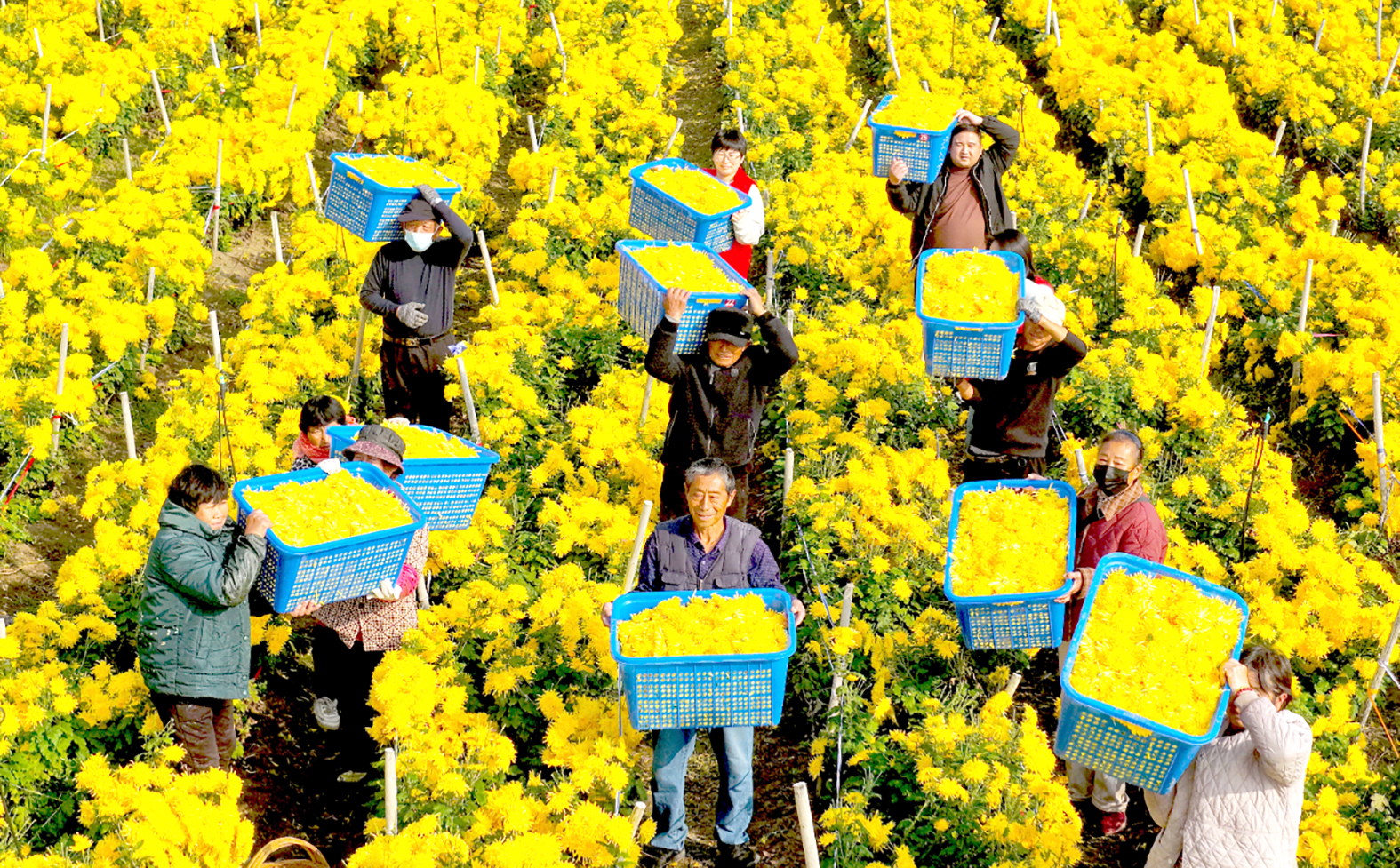 初冬时节,安徽省亳州市利辛县纪王场乡种植的金丝皇菊进入采摘期,当地农民忙着采摘、分拣、烘干金丝皇菊,供应各地市场。近年来,利辛县采取“党支部+家庭农场+农户”的模式,积极引导农民种植金丝皇菊等,实现富民增收。