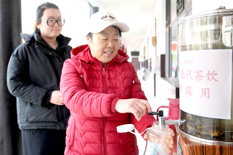 图为就诊群众正在接用中药防流感代茶饮。张磊摄