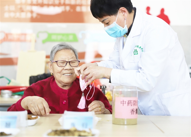 12月6日,山东省邹平市黄山街道社区卫生服务中心开展“义诊上门健康护老”主题活动,医务人员走进养老中心,为老年人免费提供量血压、测血糖、针刺、艾灸、耳穴压豆等健康服务,并与他们一起制作中药防流感香囊,宣传冬季养生保健知识。