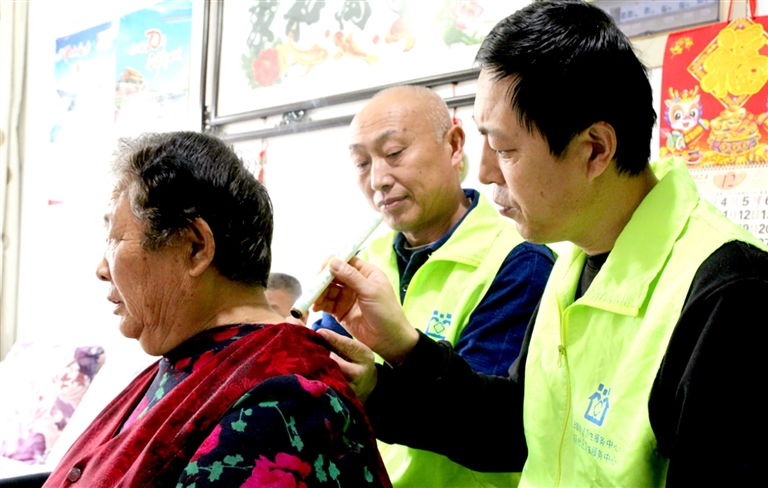 日前,山东省高青县卫生健康局组织开展“寒冬送暖”巡诊服务活动,组织家庭医生为辖区内慢性病群众免费开展一般体检、中医理疗和用药指导等服务。图为高青县田镇街道社区卫生服务中心家庭医生为居民艾灸。张磊摄