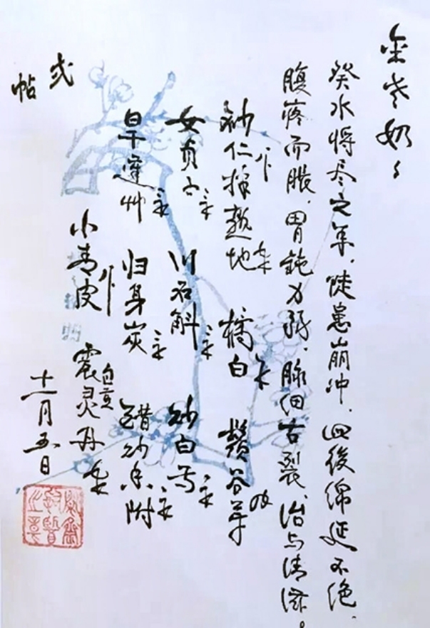 徐荣斋处方末尾“十一月五日”的落款轻而稳,他递出这张梅花笺时,大概只想这方子能治好病人的腹疼,没想过会成为传世的笔墨遗存。这份自然流露的仁心,让花笺上的墨痕历经岁月,依旧能暖到每一个观字者的心。(李治钢)