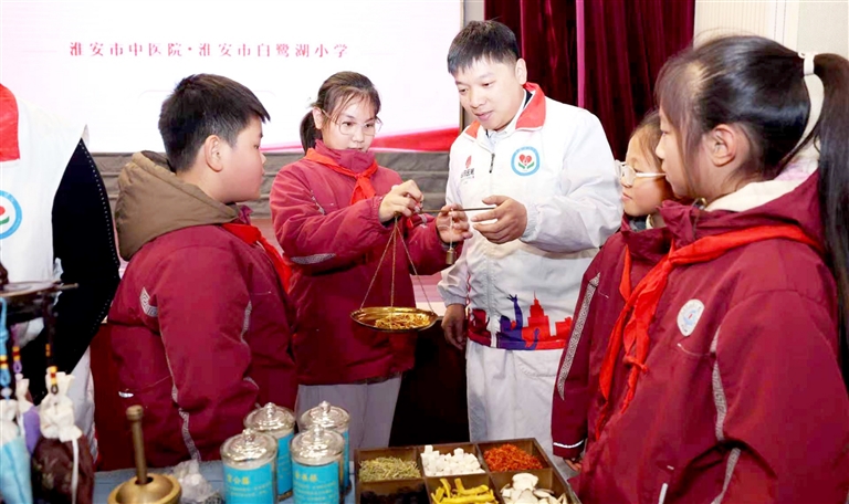 日前,江苏省淮安市中医院与市白鹭湖小学开展“岐黄校园行”结对共建合作,推动中医药文化进校园。