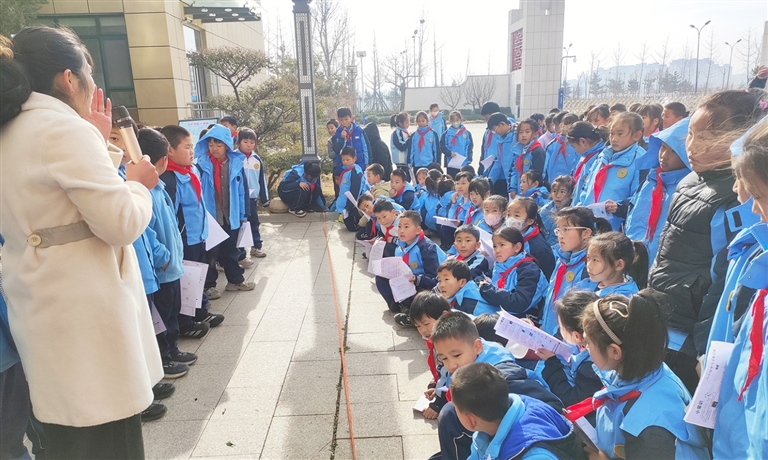 图为该校老师在活动中向学生们介绍二十四节气的相关知识以及“天人合一,顺应四时”的中医养生理念,在观察日影时,为学生们讲述植物生长变化规律,帮助他们理解农时对庄稼、药材生长的影响。 张晓芳摄