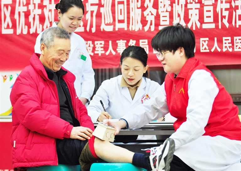 春节临近,四川省绵阳市安州区人民医院联合区退役军人事务局,组织优抚医疗巡诊医疗队,深入辖区开展“关爱老兵健康迎新年”巡诊活动,为优抚对象和退役军人提供测血压、血糖等免费常规体检、中医理疗等健康服务。