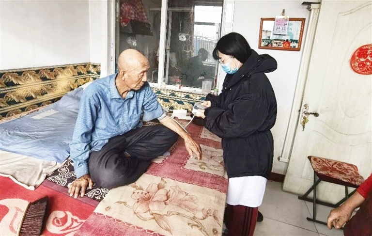“他们基本每周都来,为我量血压,做检查,提醒我按时吃药,我现在的血压控制得很好,感谢有‘马背医务室’的大夫们。”牧民国陈太感激地说。国陈太是包头市达茂旗巴音敖包苏木巴音花嘎查牧民,有高血压病史,布珍是当地卫生院的蒙医全科医生,也是“马背医务室”巡诊队员,每周她都会到包联点巡诊,年前,布珍和“马背医务室”的队友们上门为牧民们做检查送健康,送去新春的问候。