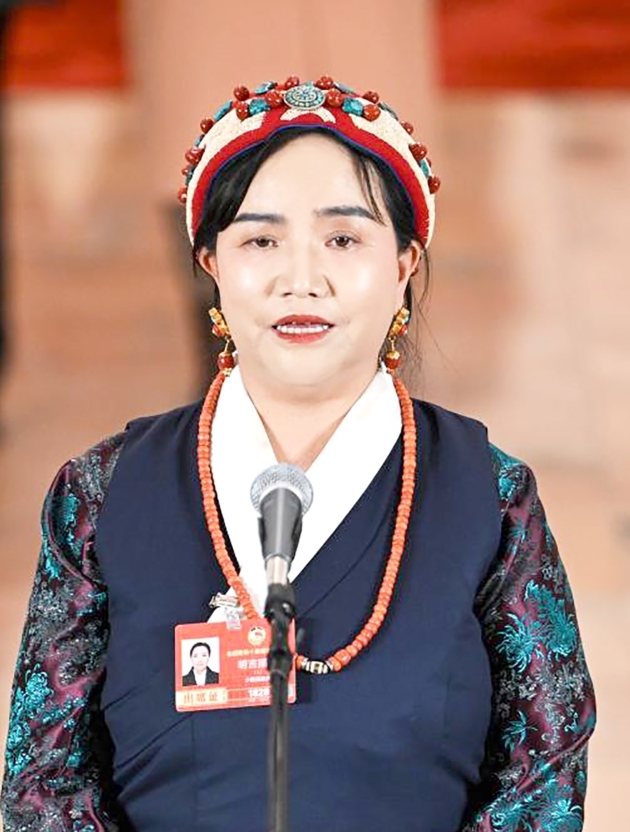 今年全国两会上,全国政协委员、西藏藏医药大学教授明吉措姆亮相“委员通道”——
