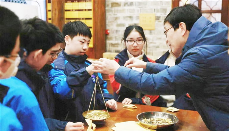 浙江省宁波国医堂老药工为前来研学的同学们讲解中草药