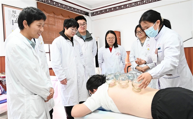 图为专家示范拔罐操作规范流程。陈静 冯润青摄影报道