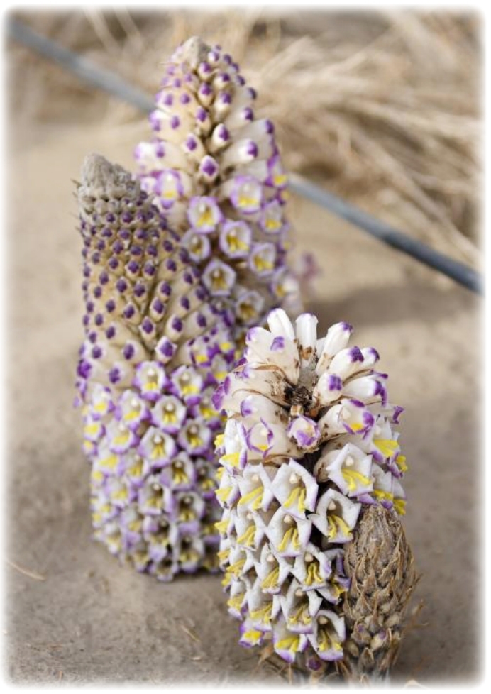 在新疆仙草蓉科技有限公司防沙治沙荒漠植物示范园拍摄的肉苁蓉。新华社记者 丁磊摄