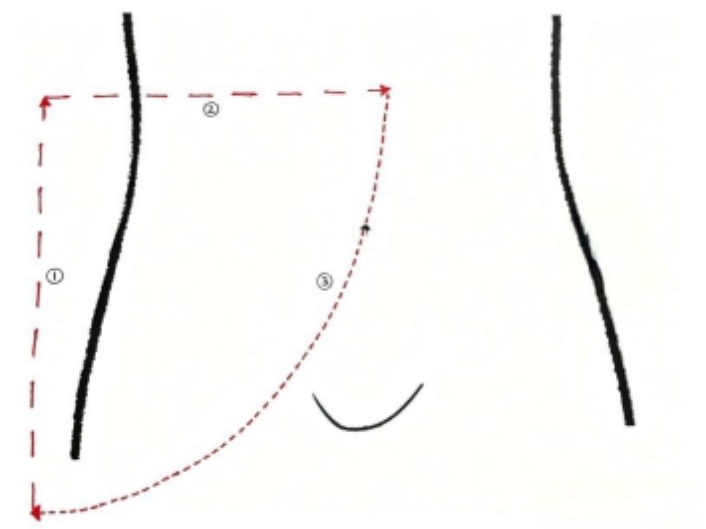 “导气利胆式”气机运行路径图。 “导气利胆式”手法导引示意图。