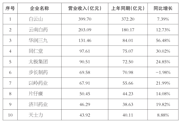 2023年上半年营收总额排名前十中药上市企业概况