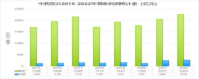 中药配方颗粒的潜在影响。2001年我国启动中药配方颗粒试点,此后中药配方颗粒产业保持高速发展。2006~2022年,产值从2.28亿增长到300亿元,16年增长了132倍。多年来,中药配方颗粒营收增速远高于饮片。2021年发布的《关于结束中药配方颗粒试点工作的公告》明确:试点工作结束,其质量监管纳入饮片管理范畴。中药配方颗粒发展将进一步加快。