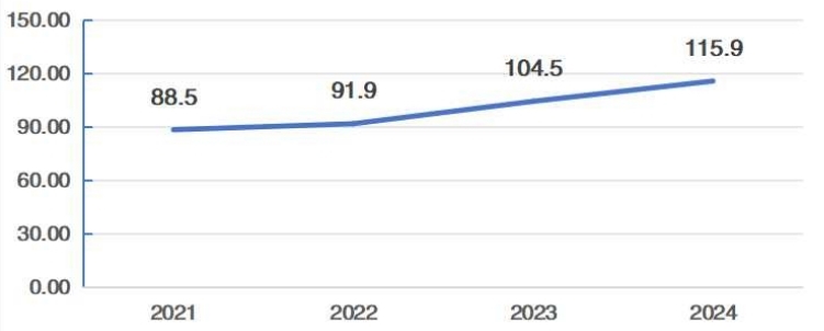 在人员方面,2024年,全国中医药卫生人员总数115.9万人,比上年增加11.4万人(增长10.9%)。其中:中医类别执业(助理)医师97.1万人,中药师(士)17.0万人。两类人员较上年均有所增加。