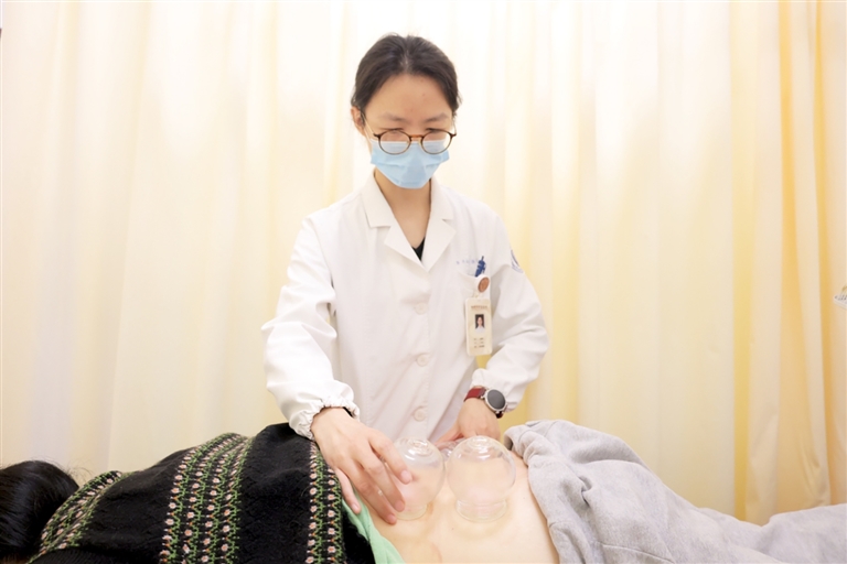 图为中医师为患者进行拔罐治疗。通讯员 周丽平摄