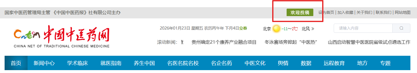 因系统升级,2026年1月26日起,中国中医药网将启用新的投稿平台(点击跳转:新的投稿平台)。同时,旧投稿平台不再接收稿件。